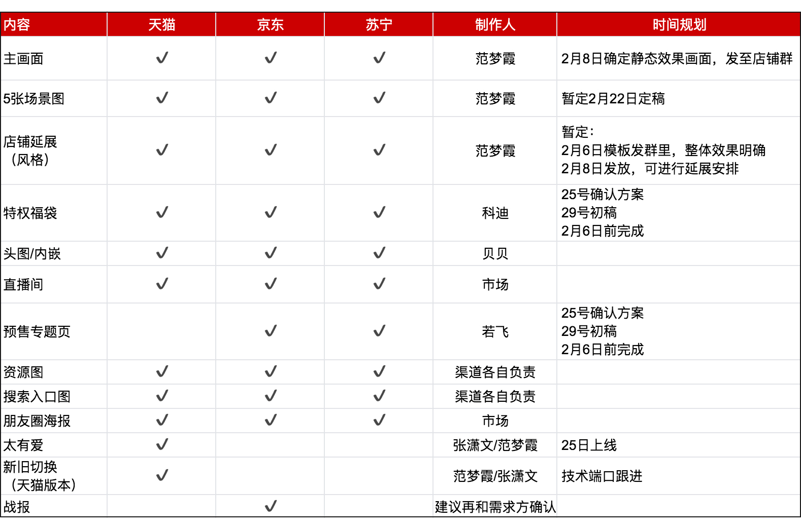 ② 其他内容规划:由每块内容各自的制作人进行时间规划,根据制定的时间,进行固定时间点的跟进,确保活动整体视觉能正常推进;