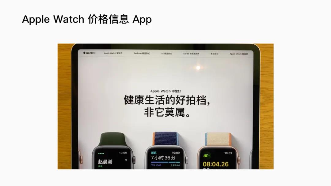 而搭载在 iPad 上 Apple Watch 的价格信息版本是别有心裁的。因为用户在购买手表时,与购买手机、电脑、平板是有不一样的痛点的。