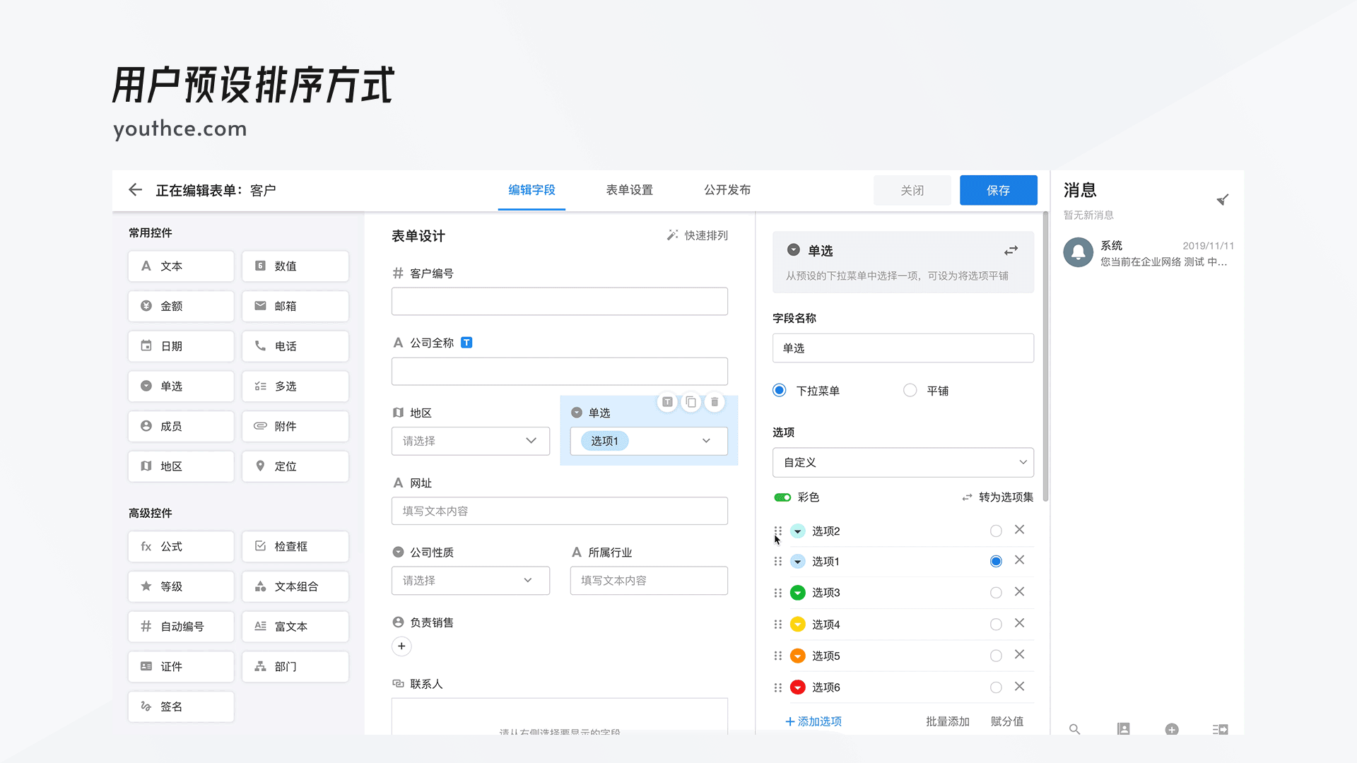 用户自己预设是目前 低代码平台 最为流行的做法。将产品的所有功能都交给用户,其中也包括了选择器以及下拉菜单里面的基本顺序。作为用户预设的一部分,显然从设计层面就难以对其进行把控,比如在 清流 的产品中,你可以通过 最后你会发现,几乎所有的低代码产品都采取选择器而非单选或多选,也正是选择器的包容度高。