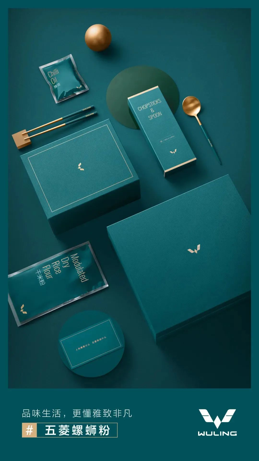 高贵典雅的祖母绿+香槟金为主色,设计上简约大气,除螺蛳粉外,盒子里还配备了精美餐具套装。