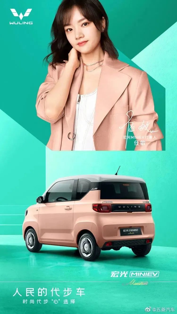 五菱宏光MINIEV还请了当红偶像任敏、马伯骞代言,宣传海报用最新马卡龙配色来呼应主题。
