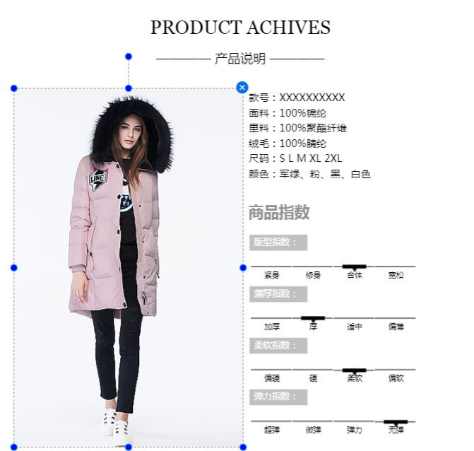 属性信息还应包括商品橱窗图、基本信息(出厂信息卡)和商品指数,温馨友好的特征指数,如质地、弹性、版型、柔软度等,这些关键属性要表现清楚、友好、简明。