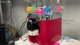 投石科技体感扭蛋机是结合Kinect体感的一款互动装置,体验者通过手势开启游戏,做游戏获得积分,累计达到预定值积分,游戏成功触发扭蛋机活者盲盒机,就会随机掉落机器内的奖品(盲盒或者扭蛋)。