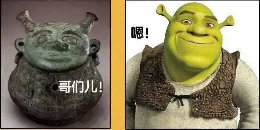 左图是2000多年前的东汉陶马,右图是《怪物史莱克》中的驴子。