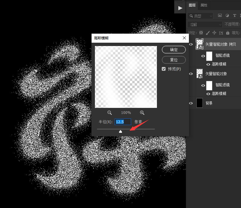 ctrl+J复制一层,双击 高斯模糊 增加半径 参数