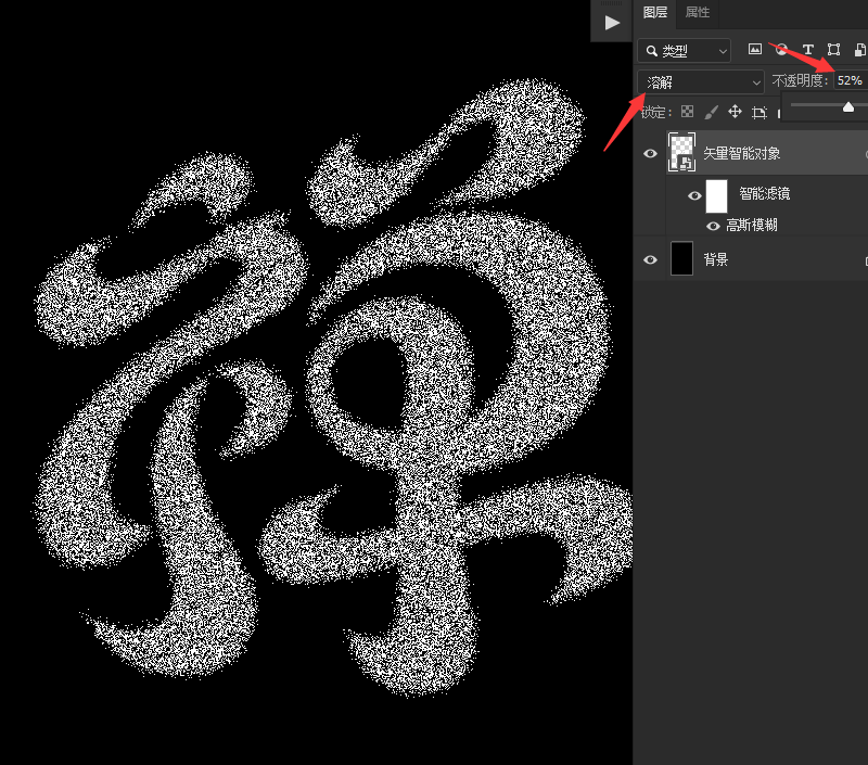 图层样式 调整成 溶解 透明度 降低一半