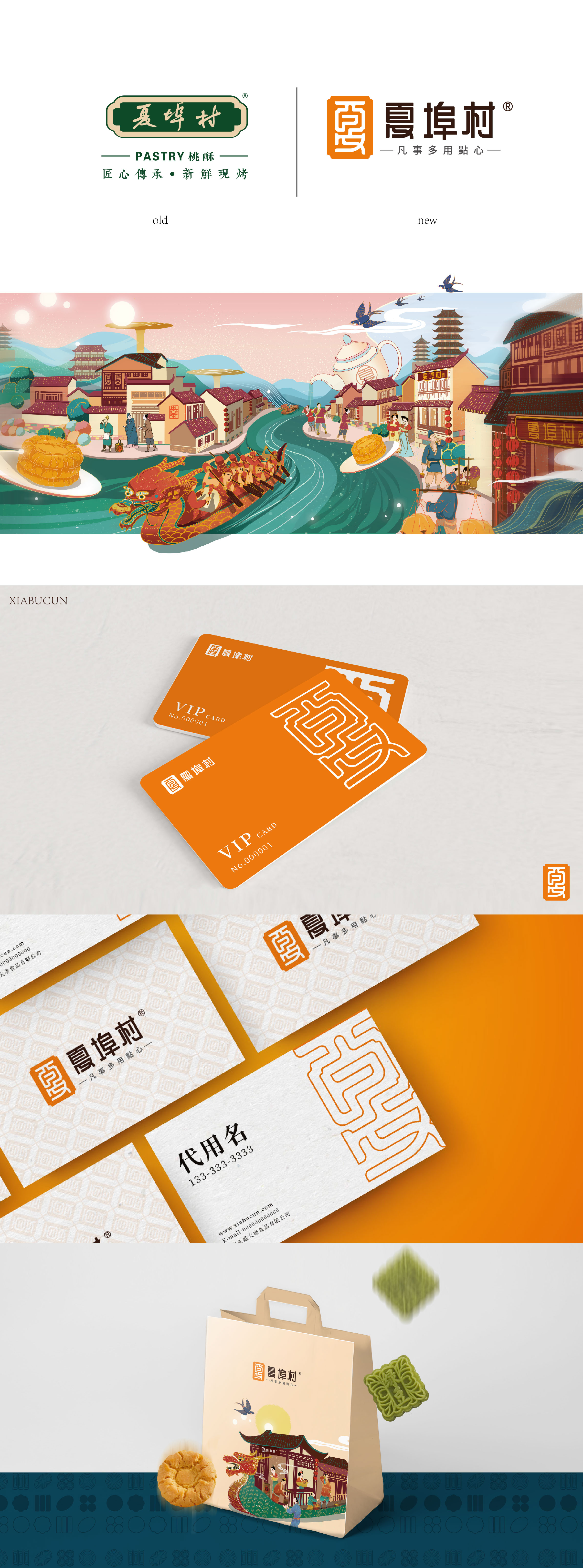 初心,是客户夏先生反复提到的词,也是我们品牌价值主张的核心要素,夏先生的创业历程和对理想的执着追求,就是夏埠村最真实的品牌形象。海右品牌专家团队,考虑到夏埠村品牌的识别性、记忆性和沟通性等多方面的问题,决定将原有的文字标升级为与消费者互动性更强的图形标:用回形纹糕点模具的纹理样式,展现出夏埠村从初心为起点开始的品牌视觉路线,也意味着夏埠村从小村子中走出来,面对更广阔的市场,始终不忘初心、坚持盛唐糕点技艺的传承,给各地的人们带去纯正美味的现制唐酥糕点。