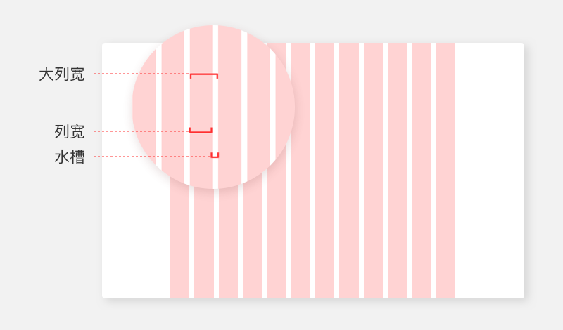 知道了列宽、列数、水槽、版面的关系,再来看看如何设定数值:我们可以根据版面的需求设定列数。比如页面中内容简洁,我们就可以把列数设置的少一些,而如果是需要展示比较多、复杂的页面细节,就可以适当增加列数。一般情况下,列数都是用2、4、6、12、24这样的偶数。