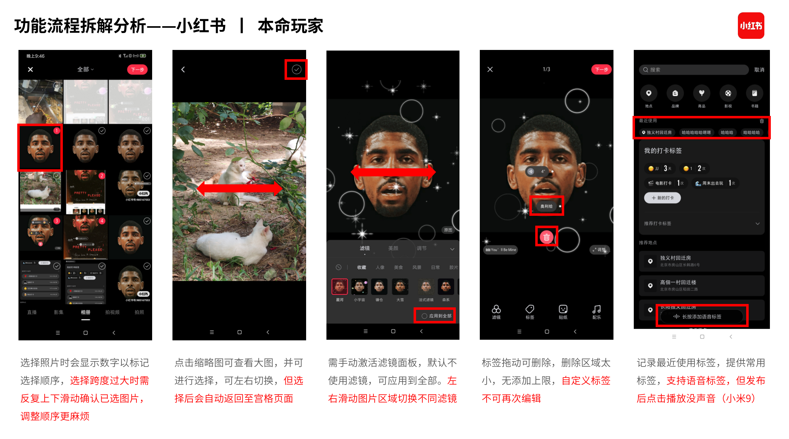 以下是小红书及竞品流程拆解示例(这是小红书上一版本的发布功能,目前版本的发布已经进行了相关优化):