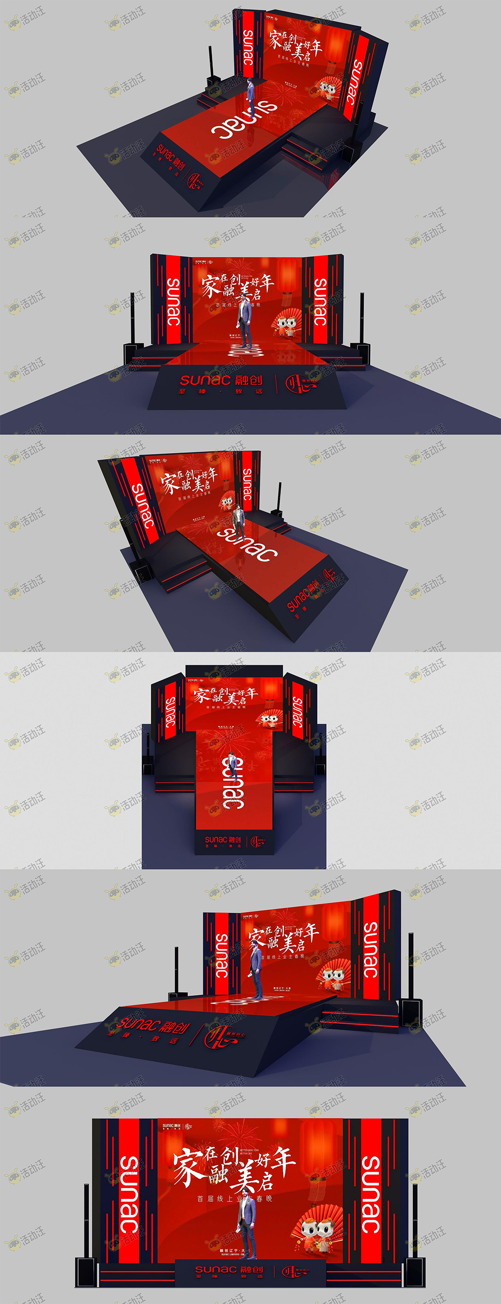 推荐理由:舞台屏幕以圆角几何形状进行设计,让造型富有设计感的同时又不会显得过分锐利,色调上使用红色渲染新春的喜庆。