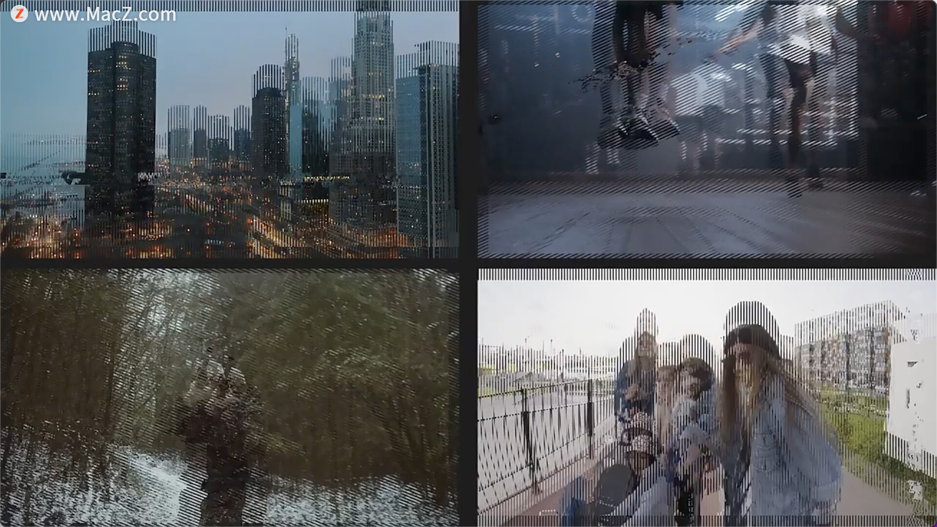 Fast Transitions模板包含300种缩放拉伸移动图形故障光效转场过渡预设
