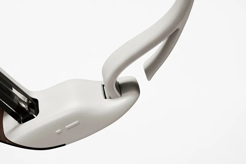 镜腿使用了合身感好和意外碰撞时也不易因碎片而受伤的尼龙树脂素材。除了侧面的ViXion logo的线条作为重点点缀之外,右侧镜腿的底部线条配置成突起状,上下左右可以通过指尖的触觉识别。