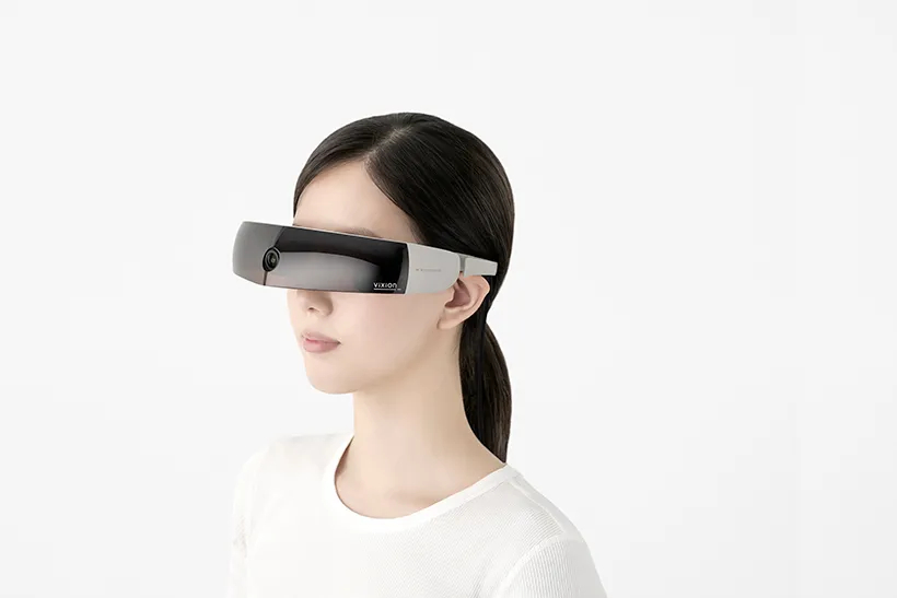 设备还具备遮光性,能够轻松看到显示器上的内容。相机镜头为广角镜头,在行走中也不易撞到人和物。在需要矫正视力的时候,内侧也可以选配有度数的镜片。