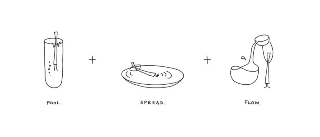 器皿在中央水深的部分蓄水,就像普通花瓶一样垂直插花使用,如果进一步增加水量,上半部分容量浅且面积大的部分就会被水覆盖,此时花便会浮在水面上或躺在水面上作为装饰。