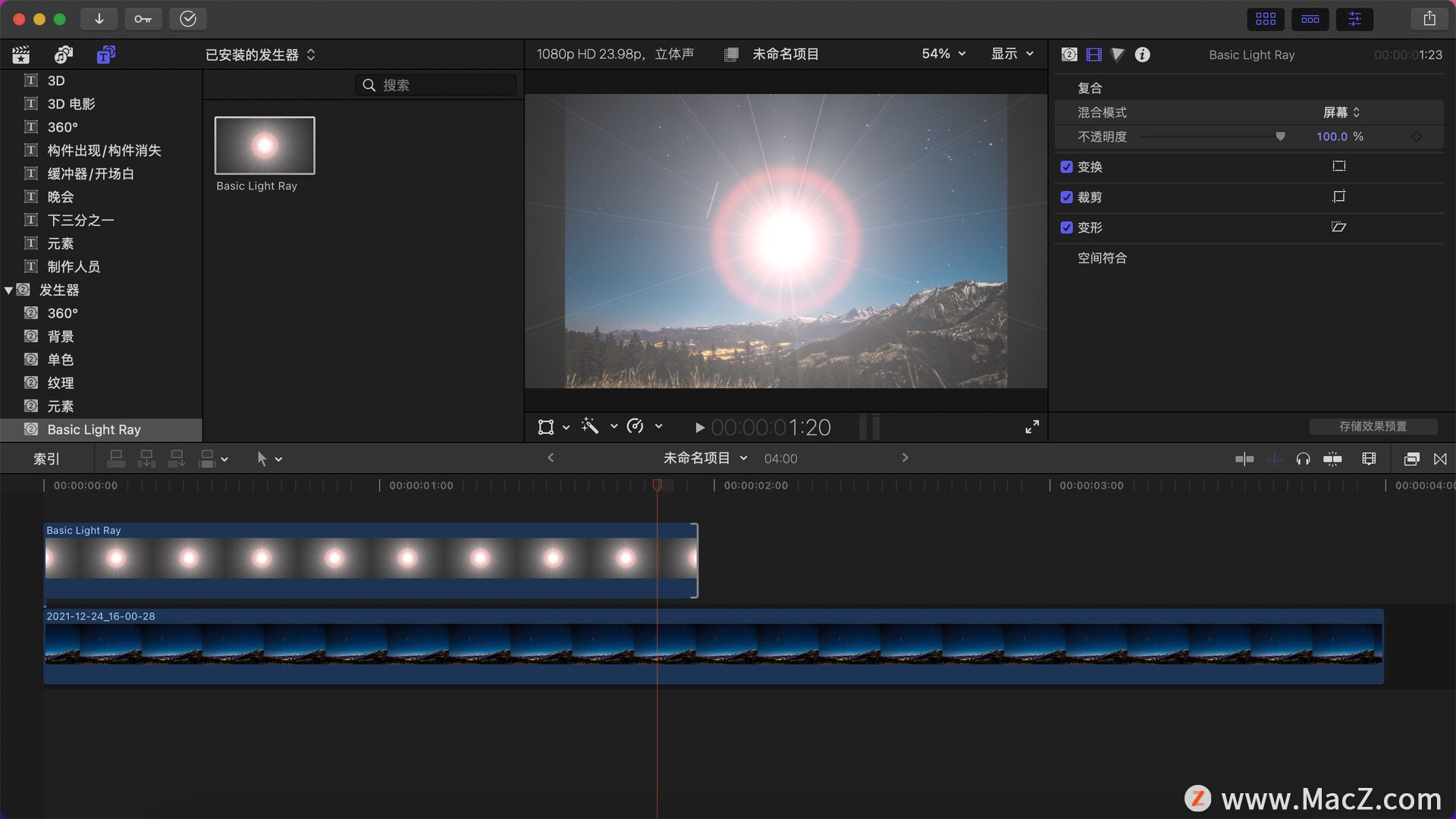 fcpx插件:Basic Light Ray for Mac(光线照射效果插件)