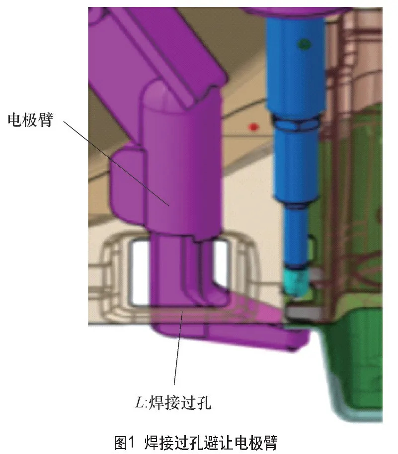 焊接过孔需通过电极头并避让电极臂的情况下,因使用的焊枪型号不同,需进行焊枪模拟分析,根据分析结果确定开孔尺寸。