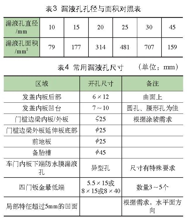 - 依据漏液孔位置、尺寸和数量,车型选定生产线的现场工艺资料,分析通过该漏液孔在生产节拍内排出的液体体积是否大于该孔所处位置空腔体积,从而判定其是否能够满足排水性要求。如漏液孔不能满足排水性要求,可采取增大漏液孔尺寸、变更漏液孔位置或在腔体最低点增设漏液孔等方法提出设计要求。