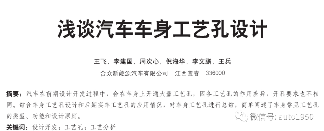 汽车在制造过程中,需要通过车身工艺孔来保证焊装、涂装、总装生产工艺过程的达成和产品设计目标的实现。因此工艺孔在汽车的设计环节有着重要的设计理念和严格的开孔要求。