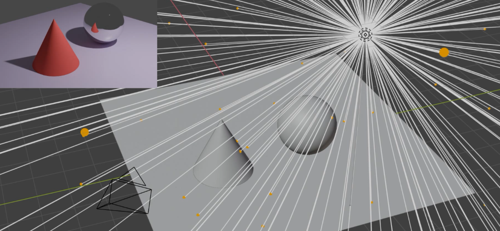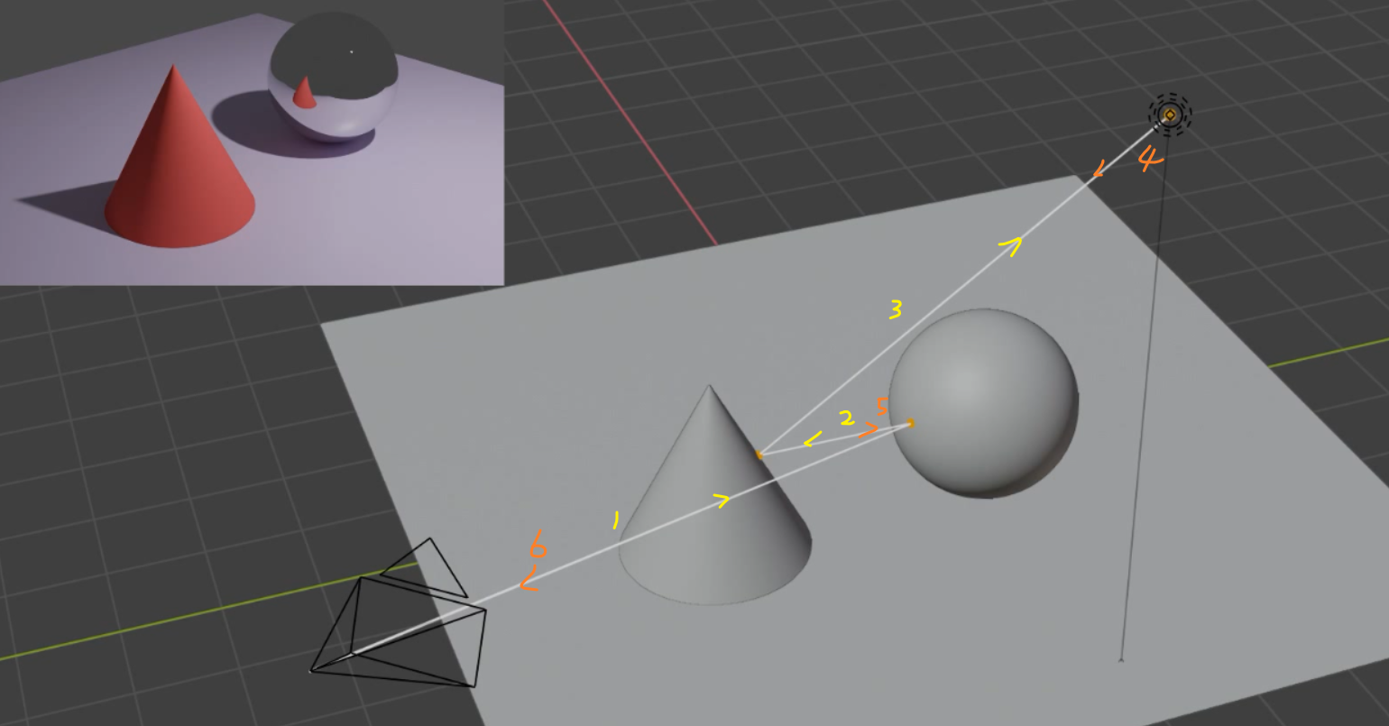即从相机开始发射光束;然后跟踪他们,直到击中物体;