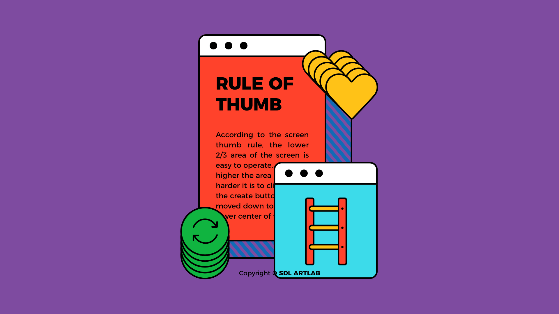 根据屏幕拇指原则,屏幕下方2/3区域为易操作区,当按钮所在区域越往上则越难被点击到。