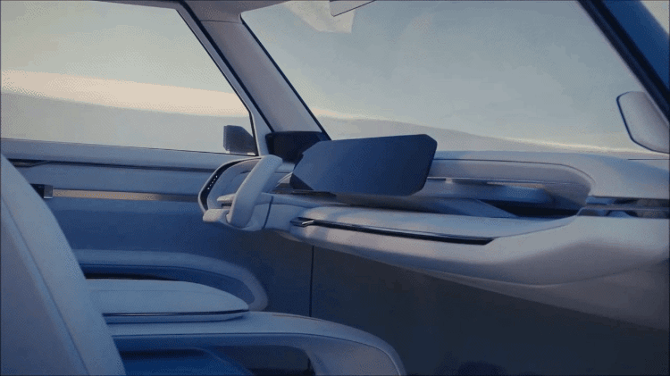 内饰设计配备了贯穿式仪表盘+横向贯穿式屏幕+无方向盘设计。
