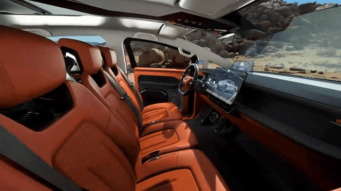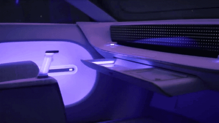 新车使用虚拟现实技术开发,它被设想为一种完全自主的电动概念,搭配开放式车顶和“1+2+2”座椅布局,十分科幻,它为我们带来了可以四处走动的社交空间。