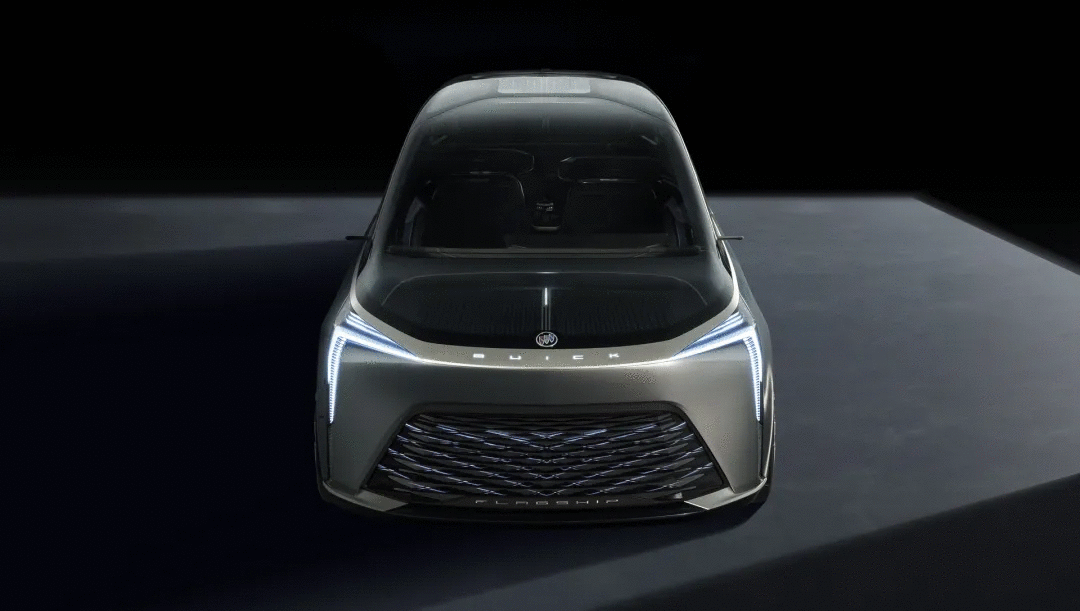 别克GL8旗舰概念车整体的轮廓还是十分熟悉的GL8车身风格,采用了双色车身的设计。前脸嵌入式LOGO+展翼式光迹交互大灯,极具冲击力。