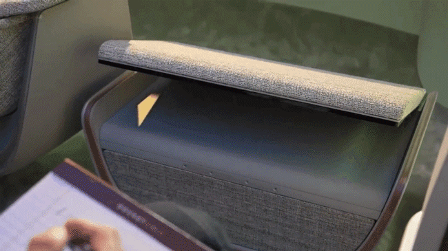 交互式触摸屏+全景玻璃屋顶+可持续材料(回收塑料瓶、回收羊毛纤维、回收渔网等材料)和可变形的客舱设计,非常具有未来感。