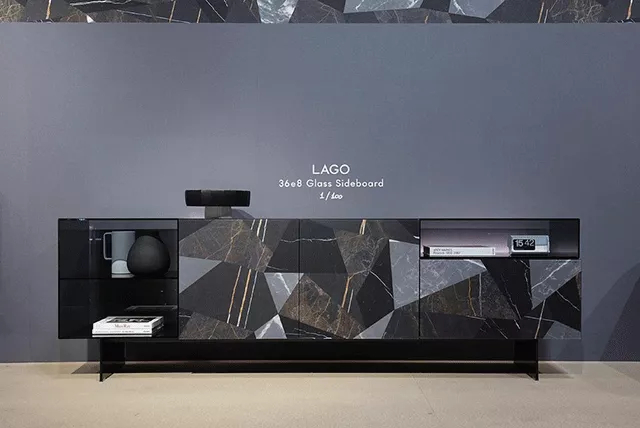 LAGO在此次展会上以4款限量产品亮相,延续品牌在玻璃运用领域无可匹敌的实力。全新的XGlass玻璃面板纹理呈几何拼接,色泽雅致与大理石的质感并无显著差异。透明 Fumé 玻璃储物格的惊人交替,以 45° 连接为特色,加上该单元的壮观体积,标志着 LAGO 最具代表性的产品之一的演变。