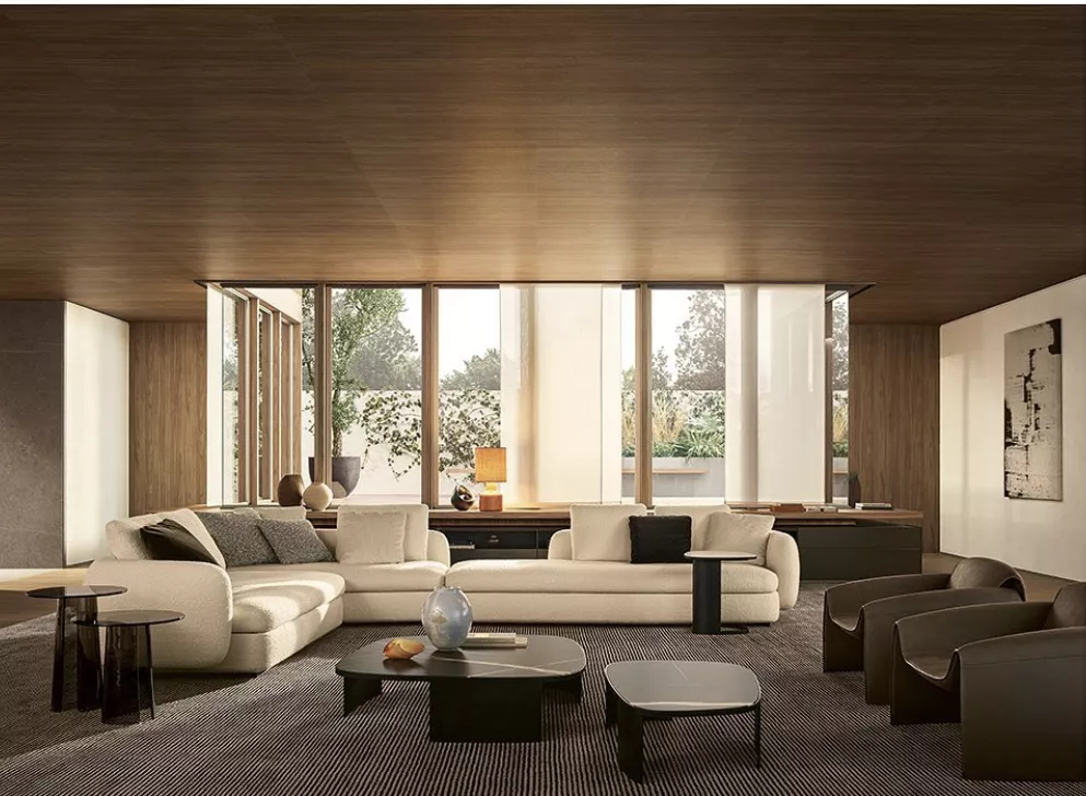 Minotti的设计简约现代,具备国际前卫的风格特点。利用简练的线条,呈现出意大利经典流畅的气韵,米灰色体现理性主义的克制美感。