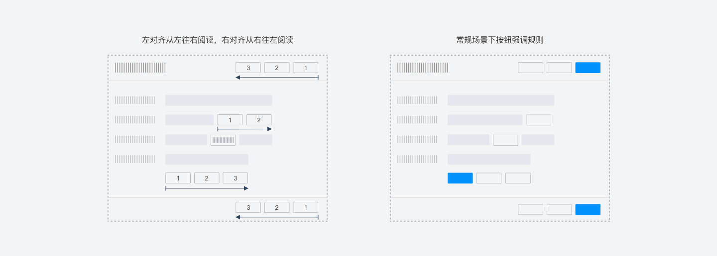 此处依然基于Ant Design 的设计原则,将规范定为:左对齐从左往右阅读,右对齐从右往左阅读;