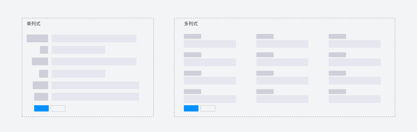 单列还是多列会收到表单内容、框架大小等影响,此项设计师可根据实际情况自行判断。