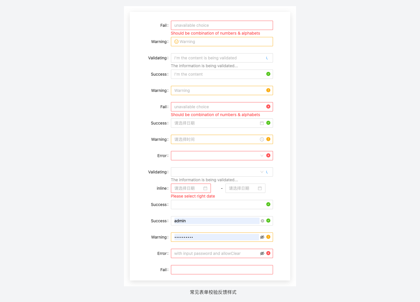 校验规则:对输入项进行验证,并给出反馈提示,如:用户未填写,格式错误、内容错误等