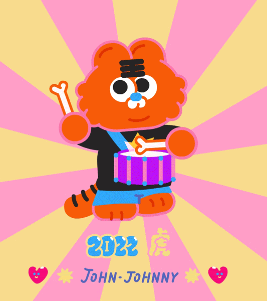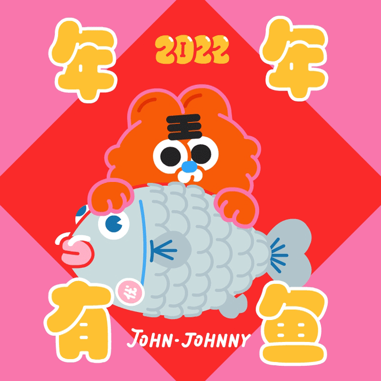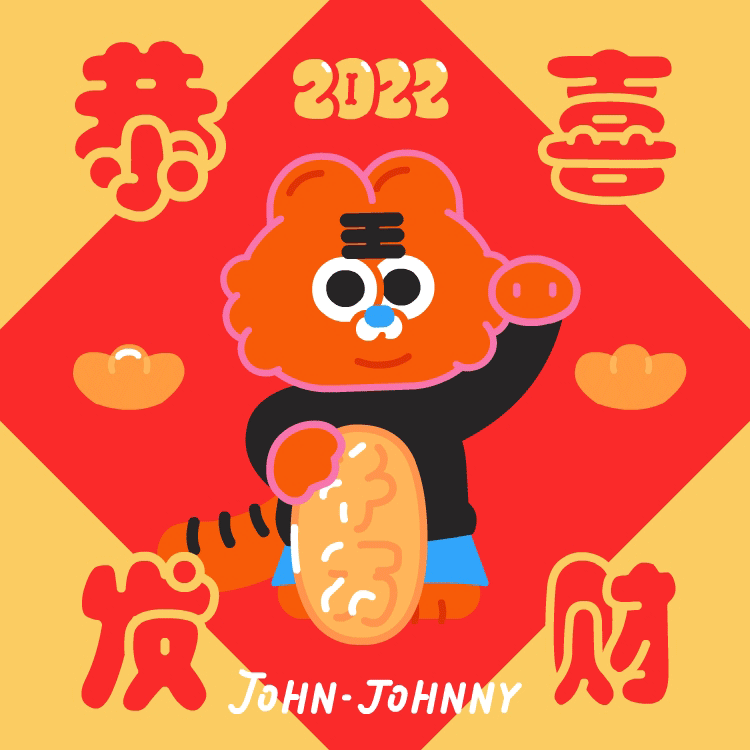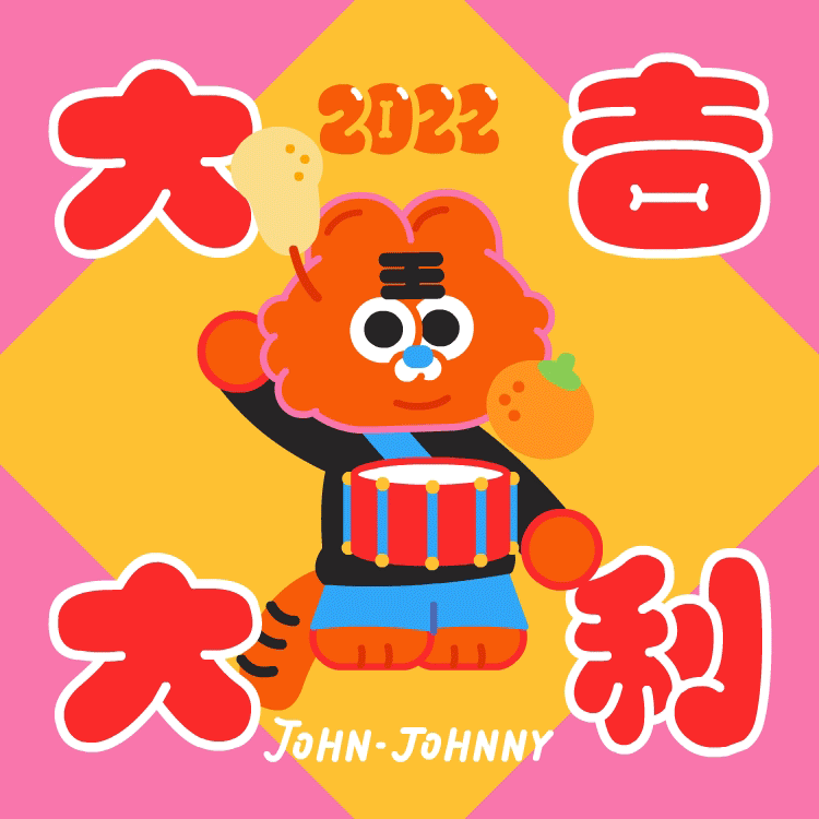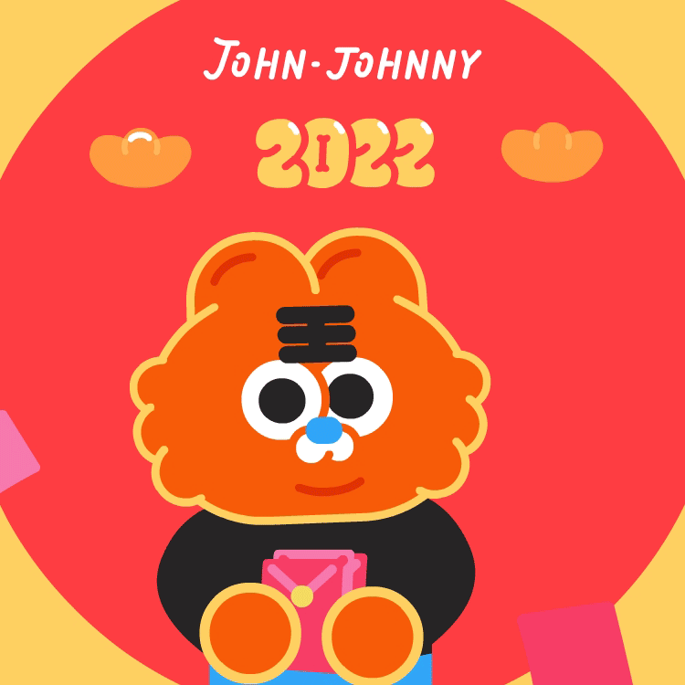 约翰强尼虎年大吉的形象紧贴虎年特征,主体物配色红红火火,表情包内有年年有鱼、大桔大梨等谐音梗元素出现,非常符合过年的喜庆氛围,而且画面精细程度很高,能给人快速留下新春印象。