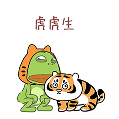 新春大嘴蛙和小老虎一起喊出祝福语,十分贴合虎年新春主题。大嘴蛙动作生动夸张,用表情包可以把春节时期的状态充分表达出来。