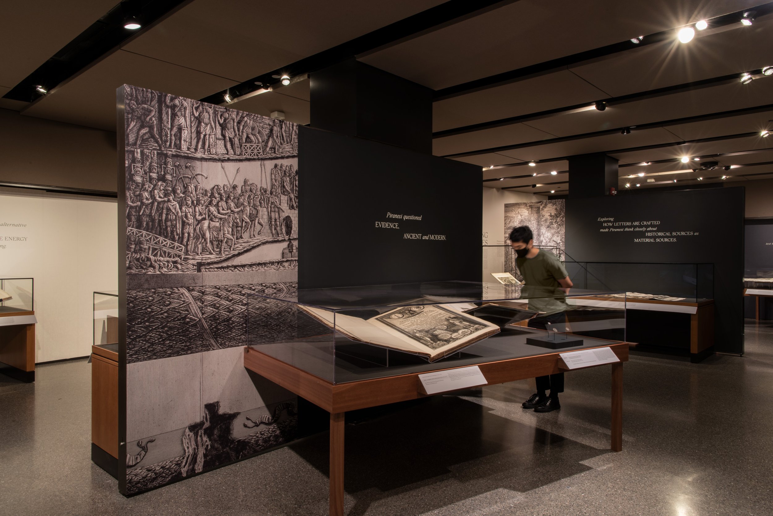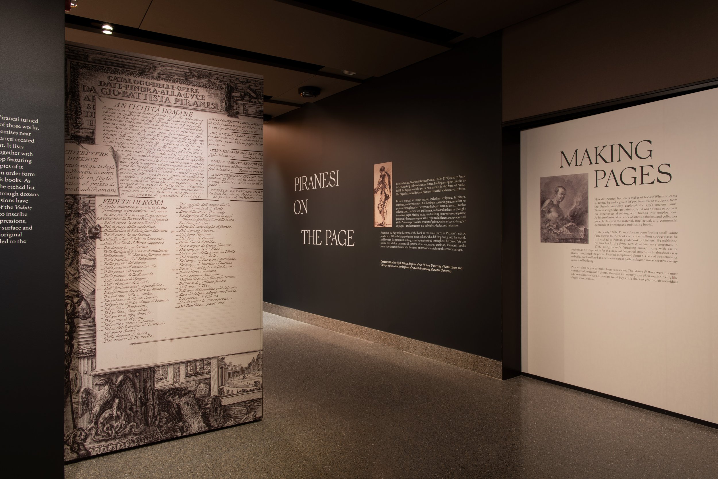 基于图书馆展览以18 世纪欧洲最重要的版画家乔瓦尼·巴蒂斯塔·皮拉内西设计的原著为主,Isometric工作室设计了衬线字体,具有历史感。针对展品,设计了精致的展示框架,现代化的排版模式便于访客获取信息,整套导视系统打造了沉浸式展览空间。