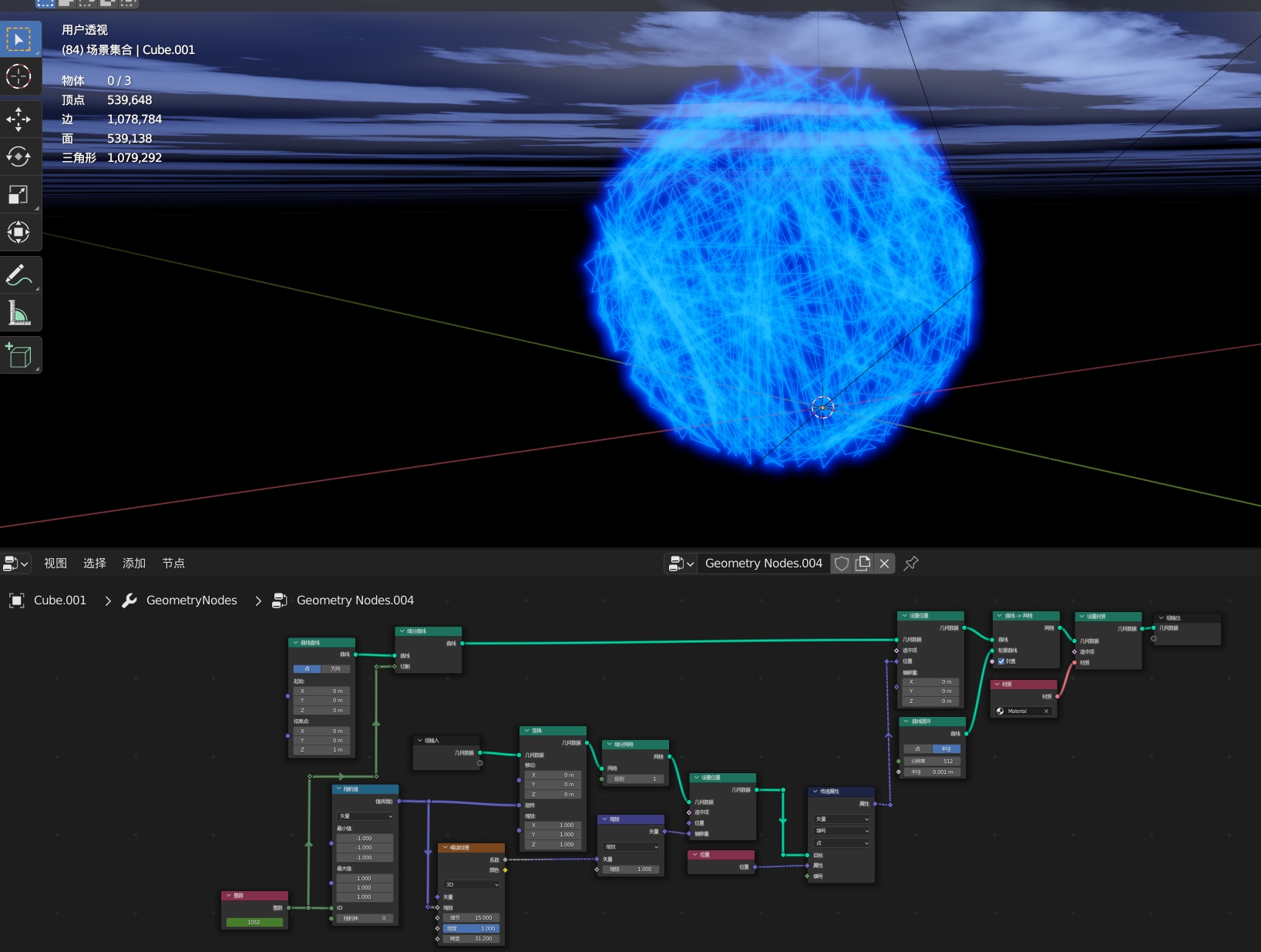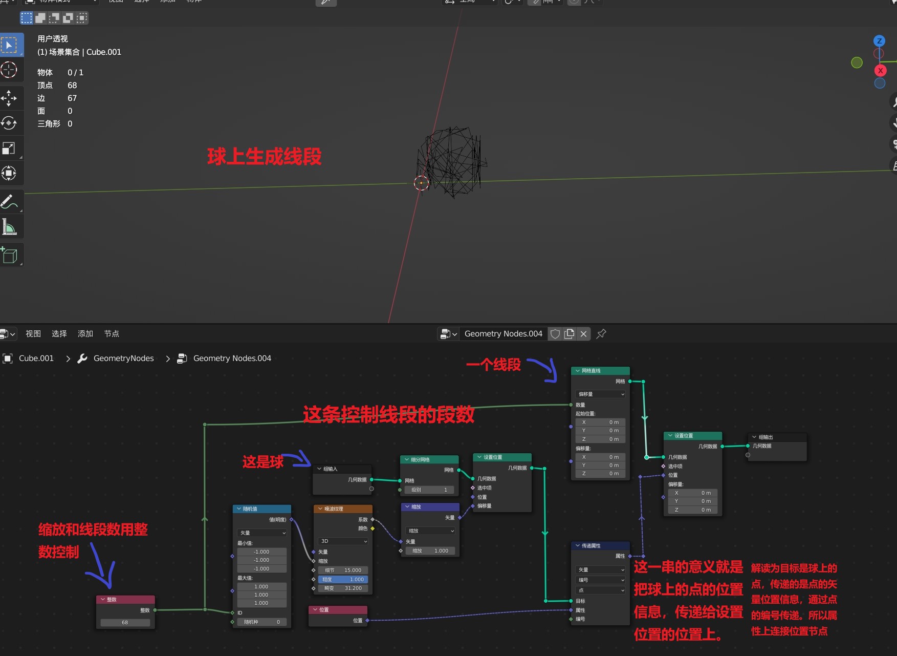 Blender 几何节点日记 模型上生成线段的动画