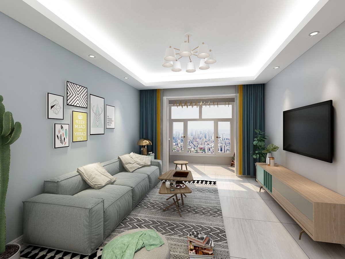 兰州东易日盛电话:15293186651;房子装修效果图:绿地智慧金融城-100平米-现代简约风格。