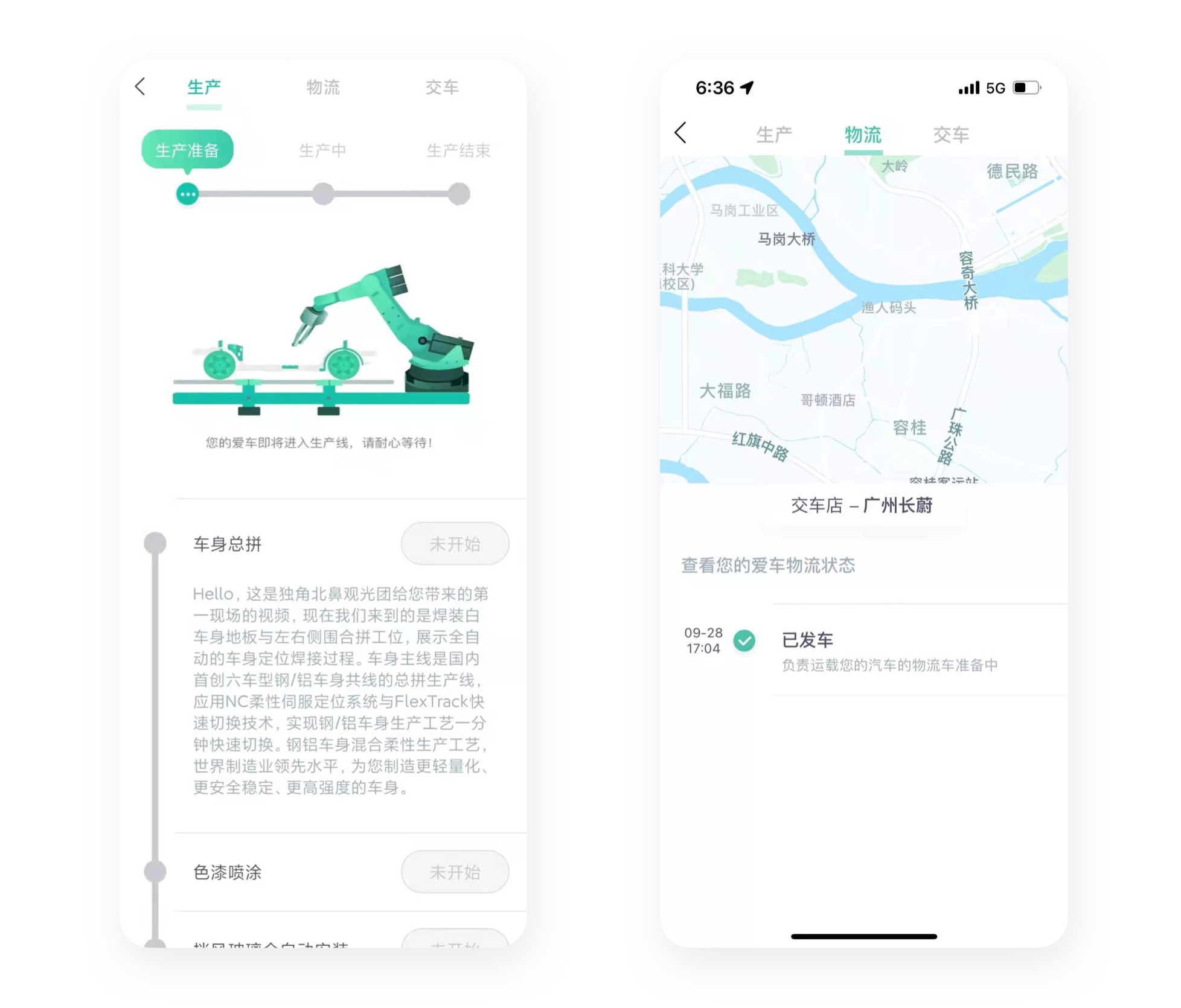 还有汽车品牌则通过数字化生产的优势将汽车从物料准备、生产加工到物流运输全过程清晰地展示在车主APP上,做到透明化生产和交付,将用户等待过程中的未知感转变为可掌控的信任感。