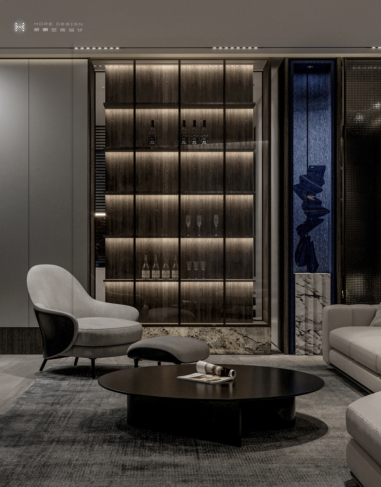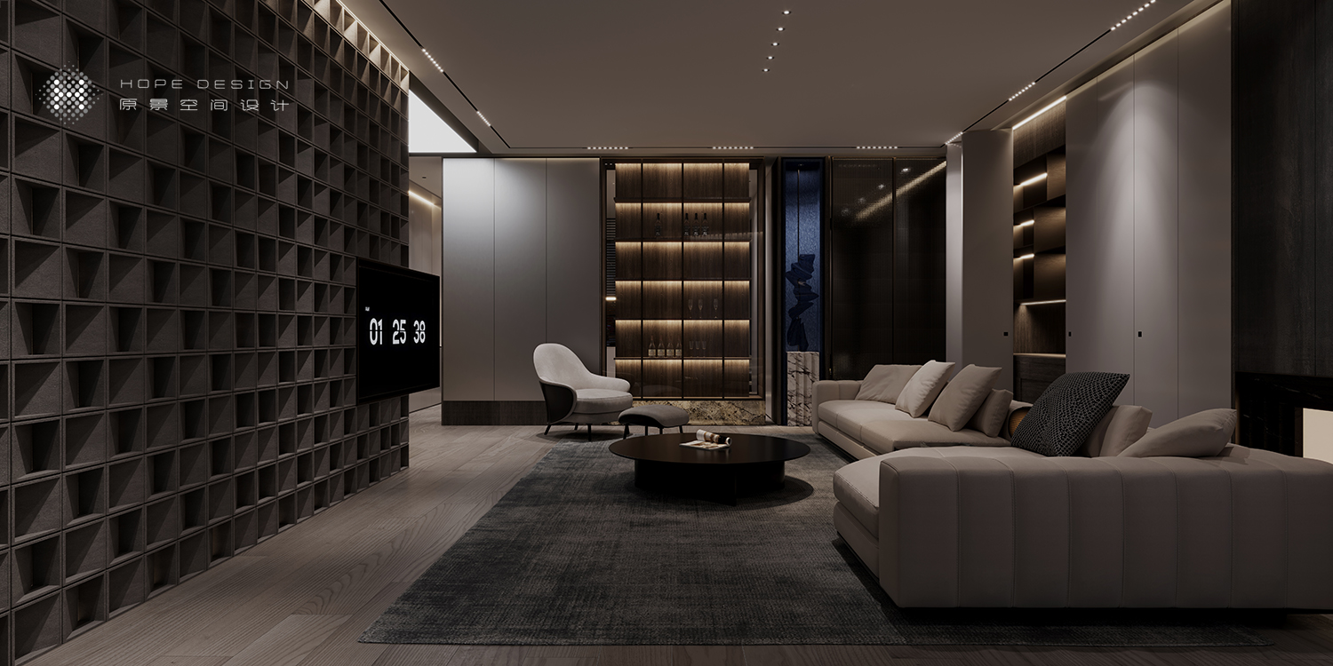 继而向前,客厅展示区将设计融于功能,无论工艺或是形式都使得空间充满层次与呼吸。