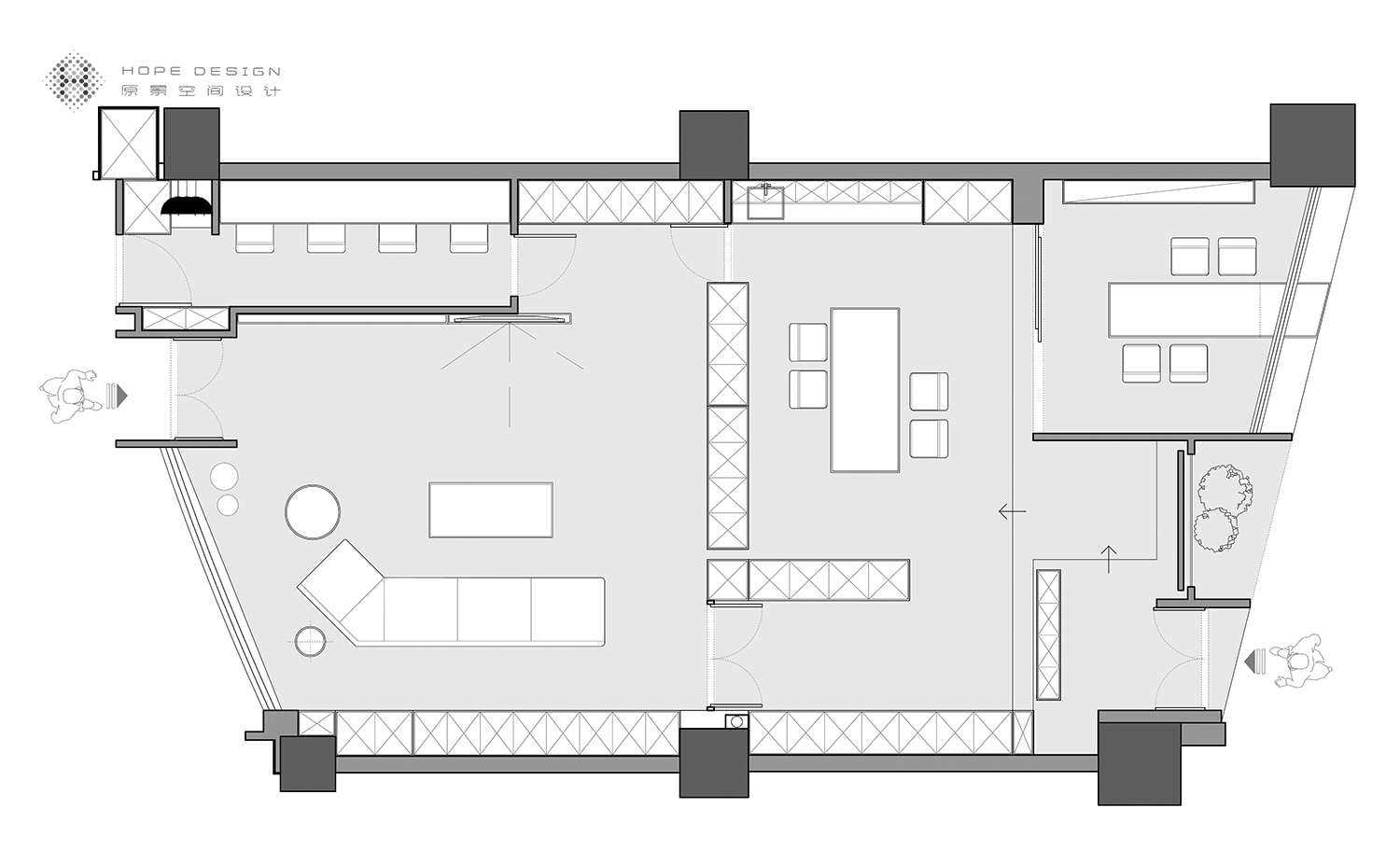 一帘入境,透过镂空望去,内部结构若隐若现。石·木·火多元化碰撞为门面设计彰显不凡气质。