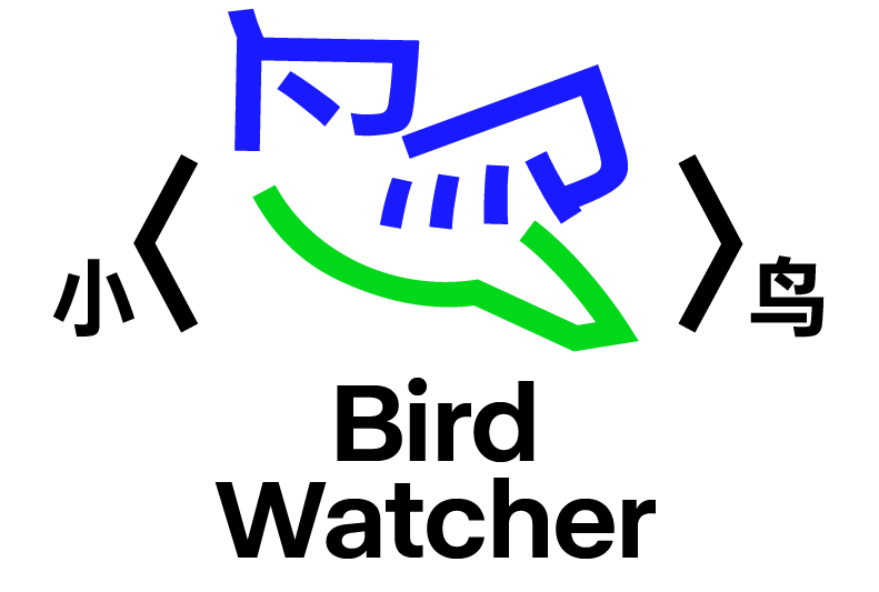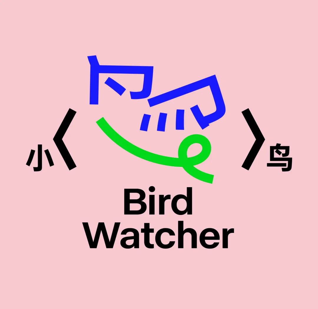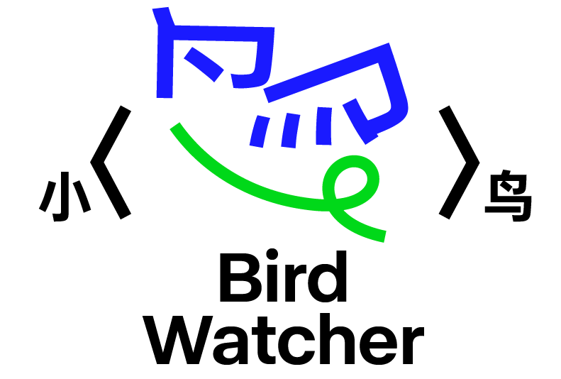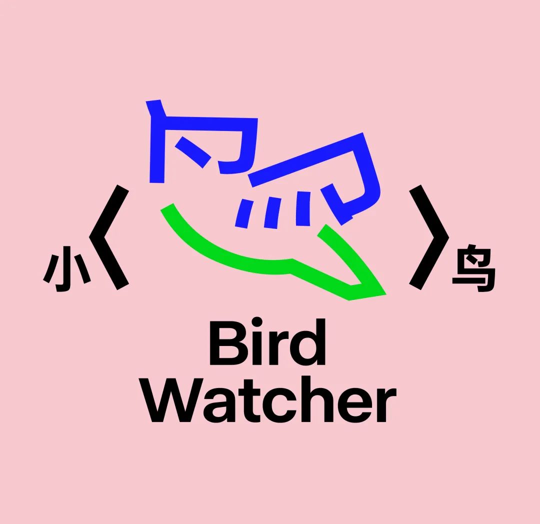 我们可以尝试更复杂一些的方案,与之前讲的方法组合使用。比如,这里我选择与「汉字拆分」组合,将「⻦」字拆开,再根据小⻦的外形补上外轮廓。这样,就用「鸟」字的笔画与简单线条共同构成了鸟的图形。当然,你还可以替换图形为更抽象的曲线,也别有一番韵味。