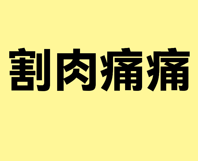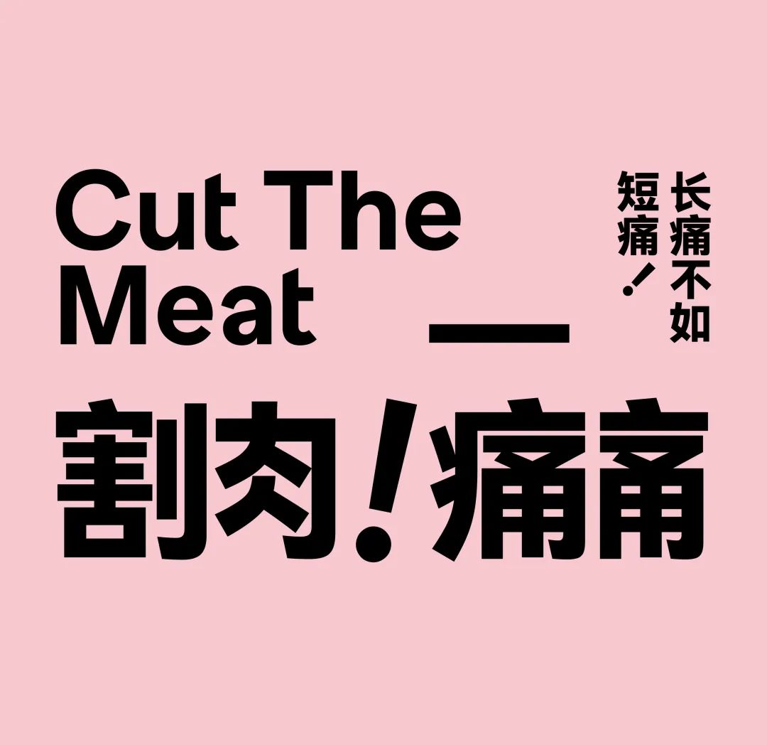 即便不是成语也没关系,只要有故事性就能创造设计灵感。比如这里的主题是割肉,那么,把「肉」字的部分笔画给切掉就行了。相应的⻄文,也进行简单的切割,形成呼应。
