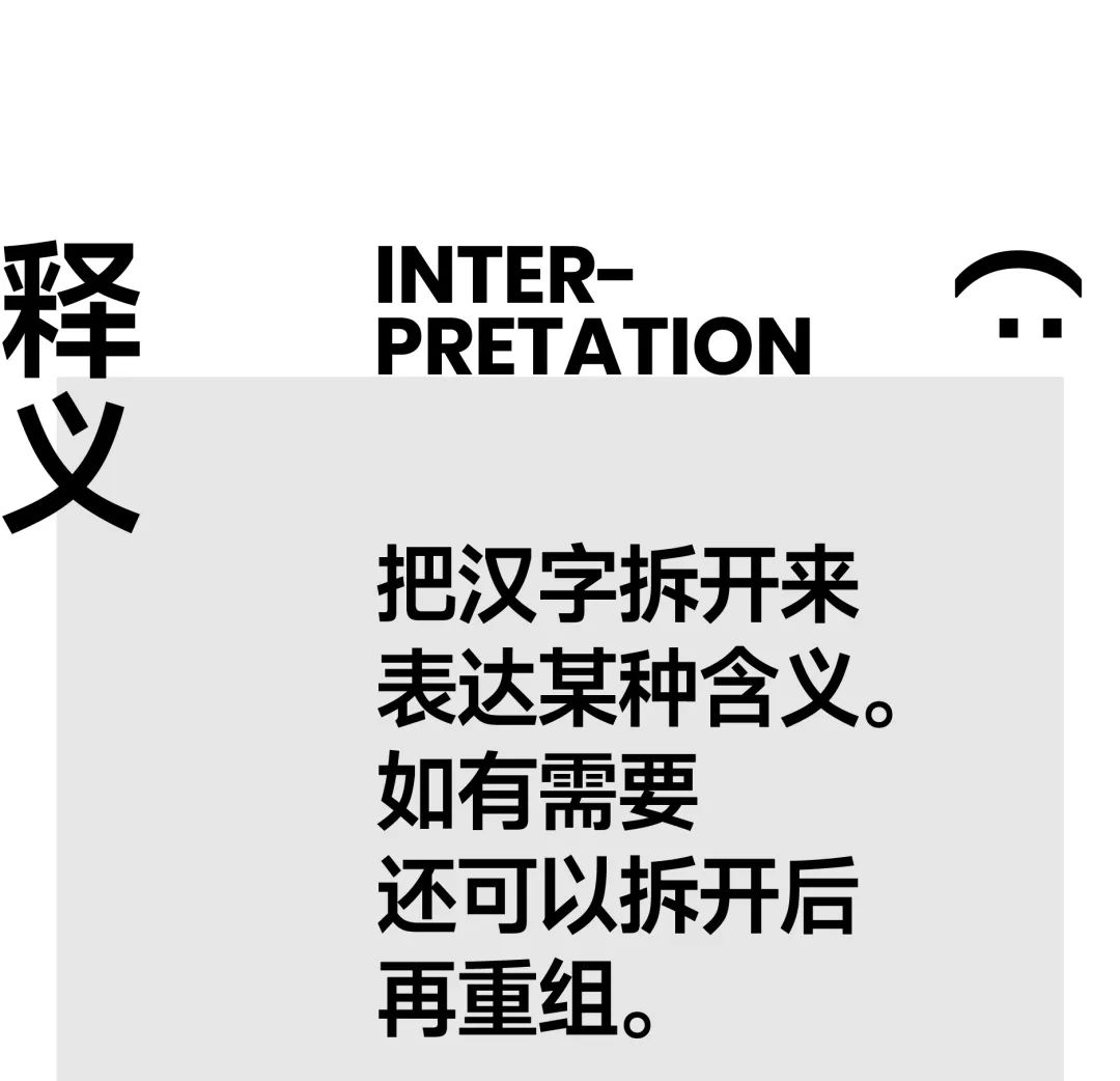 而这一切,都要归功于汉字的独特性,从最初刻于甲背的原始图案到如今我们依旧在书写的一撇一捺。它独有的造字逻辑,构成形态,让我们远隔千年,依旧能读懂先人们的思想,给予我们许多的创作养分。希望各位设计师们,能在创作中用好这份我们独有的宝贵财富,⾃豪的告诉别⼈:“汉字,就是可以这么强!”