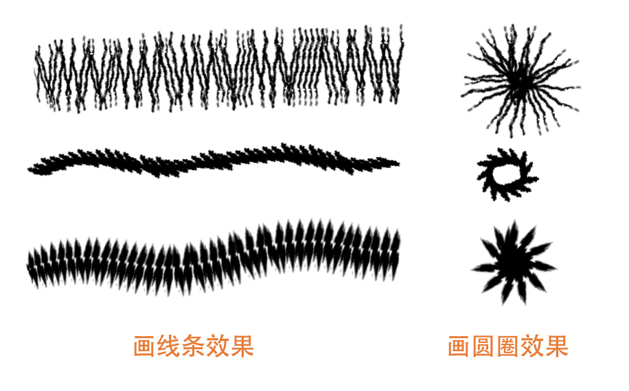 这样的笔刷我们可以用来画一些毛绒的动物和花朵等一些放射性边缘的图案。