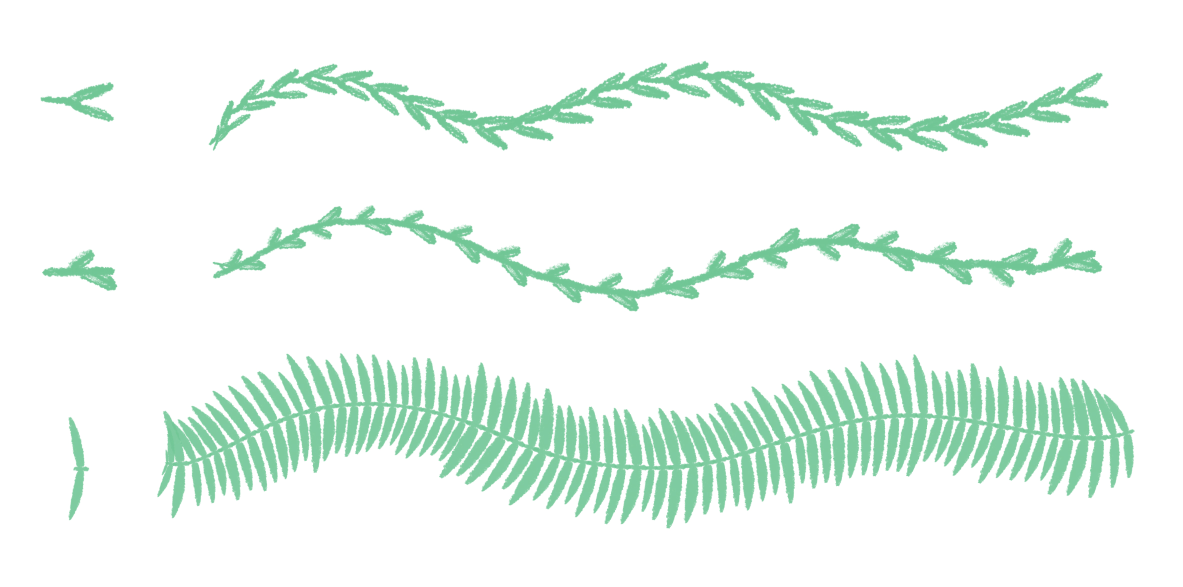 比如,我们可以做成上图这样的笔刷,可以用来快速的画出植物的叶子。