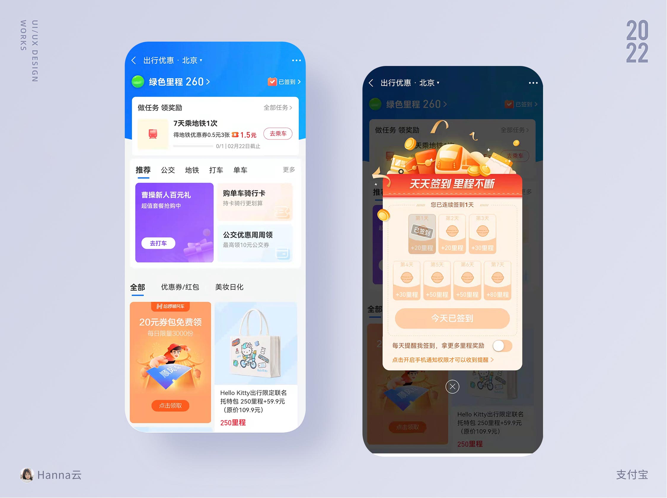 1.出行优惠,通过做任务、可以领取奖励,优惠券,吸引用户点击参与,增加用户黏性。