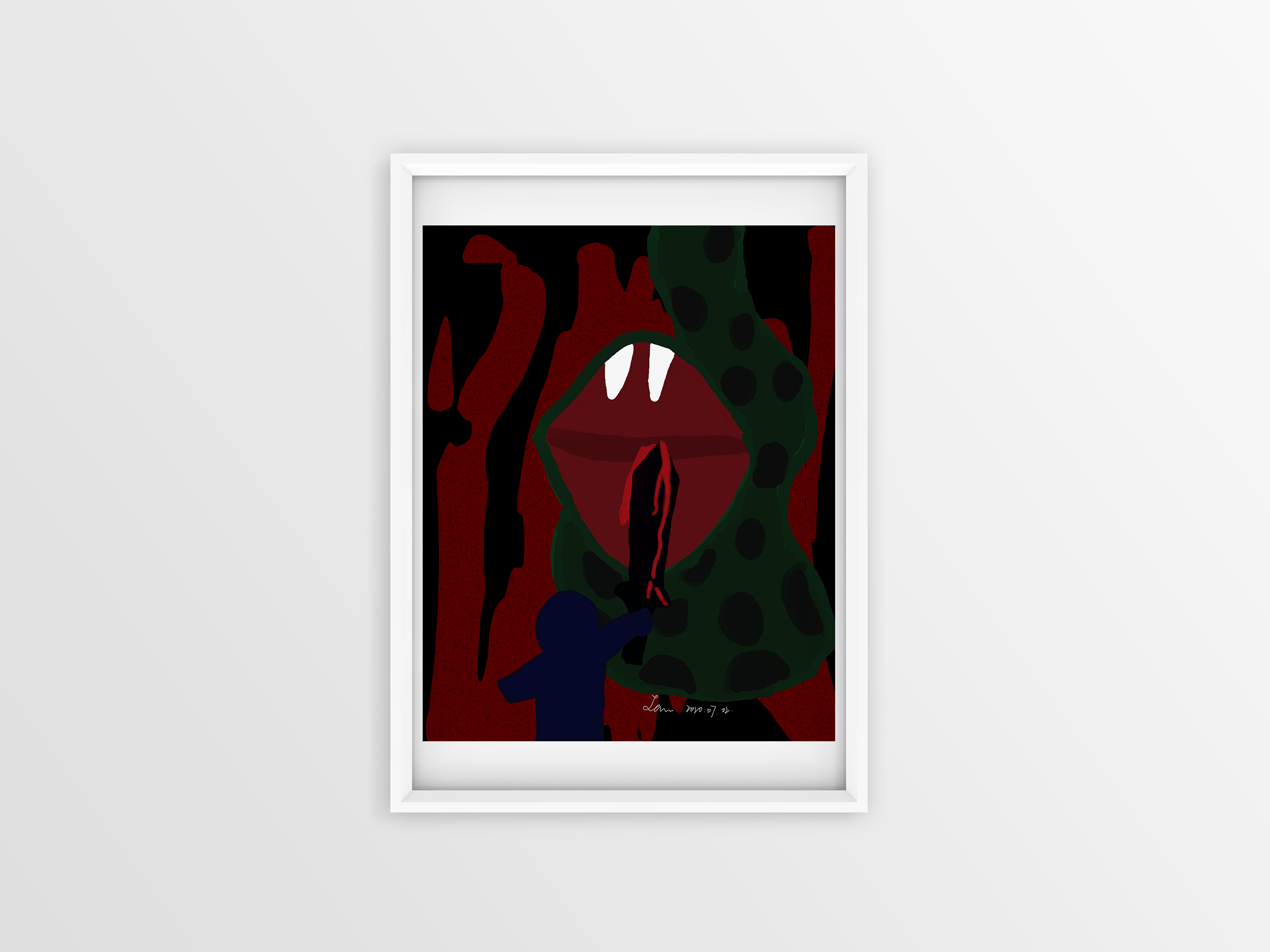 灵感来源:那段时间差不多是每晚都会梦见被蛇追或者攻击,这个就是其中一个梦里的场景,梦里的我走在一个田埂里,周围是很清晰的血腥味,后来就开始被蛇追,然后这条无比巨大的蛇袭击我,我奋力抵抗用手中的剑刺了过去。(神奇的是,我现在还能记得)