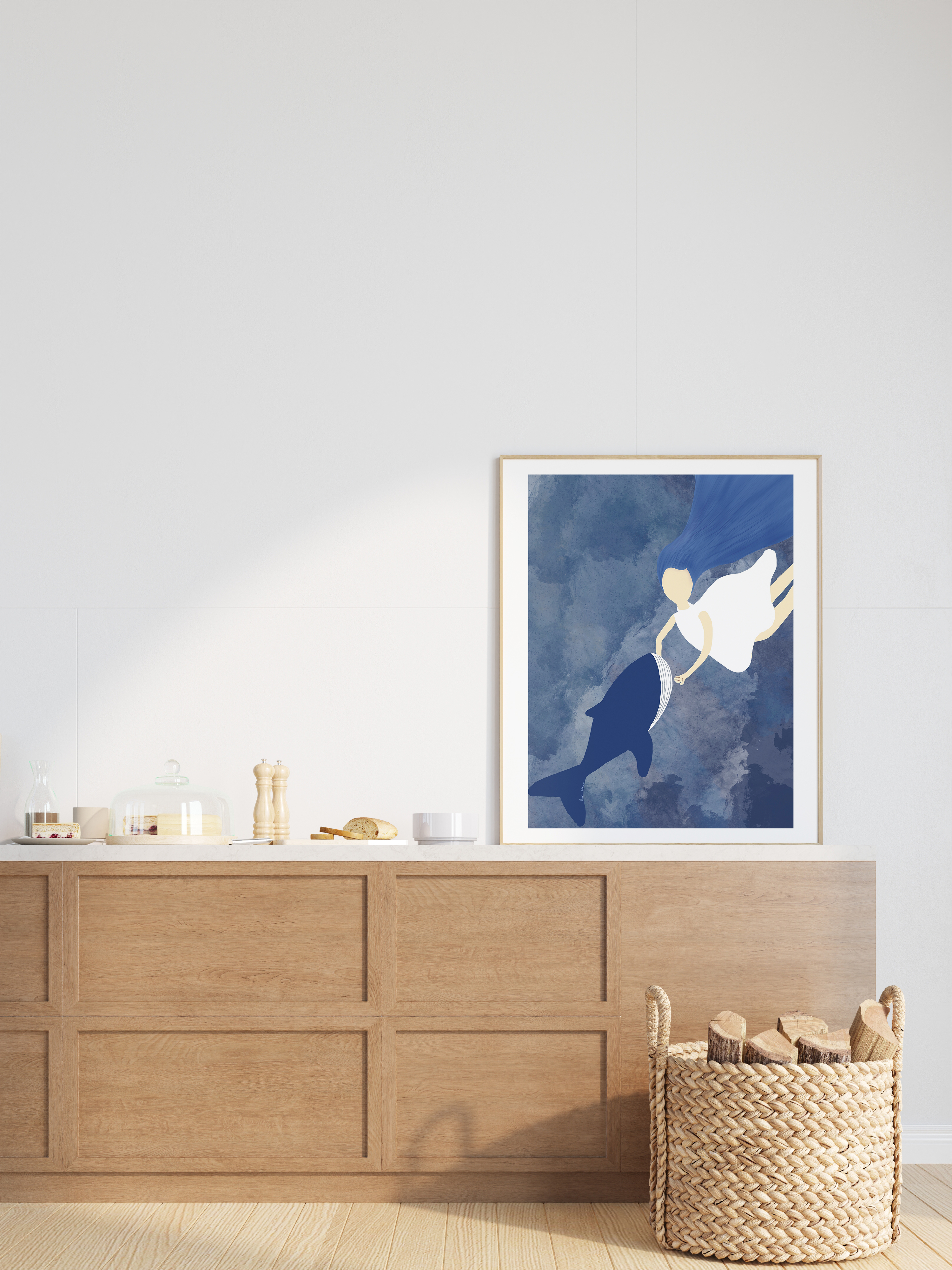 灵感来源:那时候我在洗碗,刚好抬头一看,月明星稀,连云层都能看得很清楚。其中一朵云的造型很像一条鲸鱼。