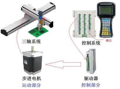 由结构框架、X轴组件、Y轴组件、Z轴组件、工装夹具以及控制柜,六部分组成。